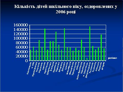 - Збільшити кількість оздоровлених дітей у позаміських оздоровчих закладах у порівнянні з 2006 роком, забезпечити якість надання оздоровчих послуг.