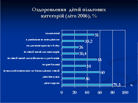 Звертаю увагу на те, що жодна із категорій не оздоровлена стовідсотково. Тільки в окремих регіонах оздоровили стовідсотково декілька категорій дітей: